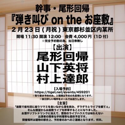 【尾形ソロ】2026.2.23(月祝) 東京・杉並区内某所