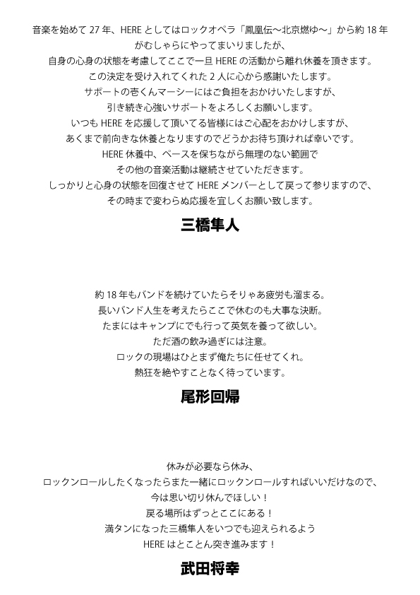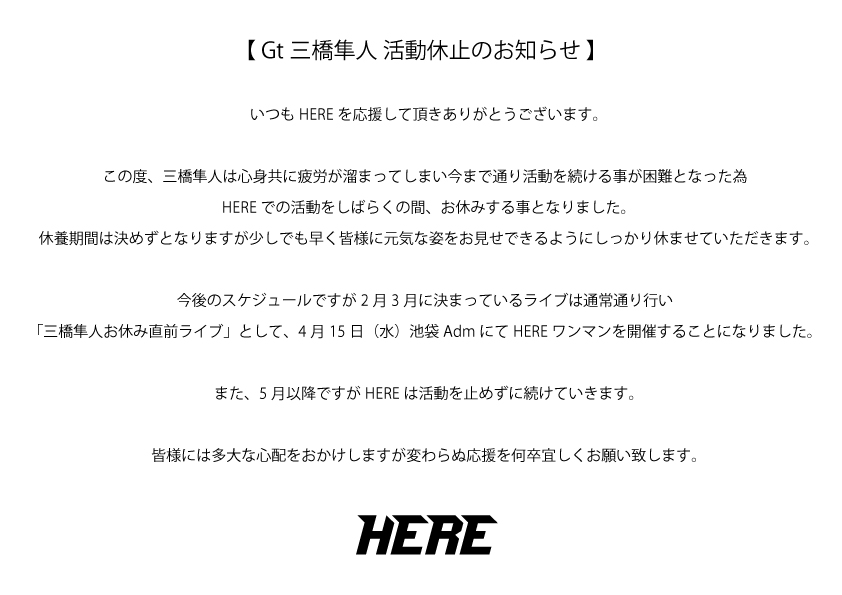 HEREワンマン「三橋隼人お休み直前ライブ」